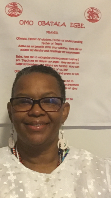 Iya Lynette White-Mathews is a Priest of Obatala with 41 years in the Lukumi Yoruba tradition. Her godparents were, Ascension Serrano Rodrigues, Osaunco, “Sunta” Ibaye as she was affectionately known and Haydee Ramirez, Yomi Yomi, Ibaye. The year was 1979, and I continue claim and understand that receiving the ache of Obatala was a positive and pivotal point in my life. I received a Bachelor of Science, in Education from New York University in 1975, and a Master of Science, in Educational Administration and Supervision from the College of New Rochelle in 2001. As a member of Omo Obatala Egbe. Inc., I understood the need to join Obatala Priests, from other houses. As a member of the Egbe I availed myself for the greater good, by becoming one of the Board members of Ijo Orisha Yoruba Church, Inc., representing the Egbe. When my tenure was up, I was approached by then President of the Board, lya Barbara Kenyatta Bey, Ogunrelekun Ibyae, to assume the position of Executive Director for the Church. This was an honor as I as stepping into the shoes of one of the pioneers in our community, Alfred Davis, Omi Toki Ibaye. While attending New York University, I joined the Chuck Davis Dance Company. The company received a National Endowment for the Arts Grant to travel the United States, teaching dance and core curriculum through art. My first trip to Nigeria was 1977 was the highlight of my dance career, when as a member of Baba Chuck’s company I participated in F.E.S.T.A.C., an arts festival bringing artist throughout the Diaspora together. In 1992 I began my tenure with the Department of Education, retiring as an Assistant Principal in 2013. My growth in the knowledge of Orisha grew with a new understanding, when in 2015 I went back to Nigeria to witness the crowning of two young women to Oshun. I was home. I continue to return to Nigeria, with Obatala’s blessings every January during the Obatala Festival in Ile Ife as Chief Yeye Alala.